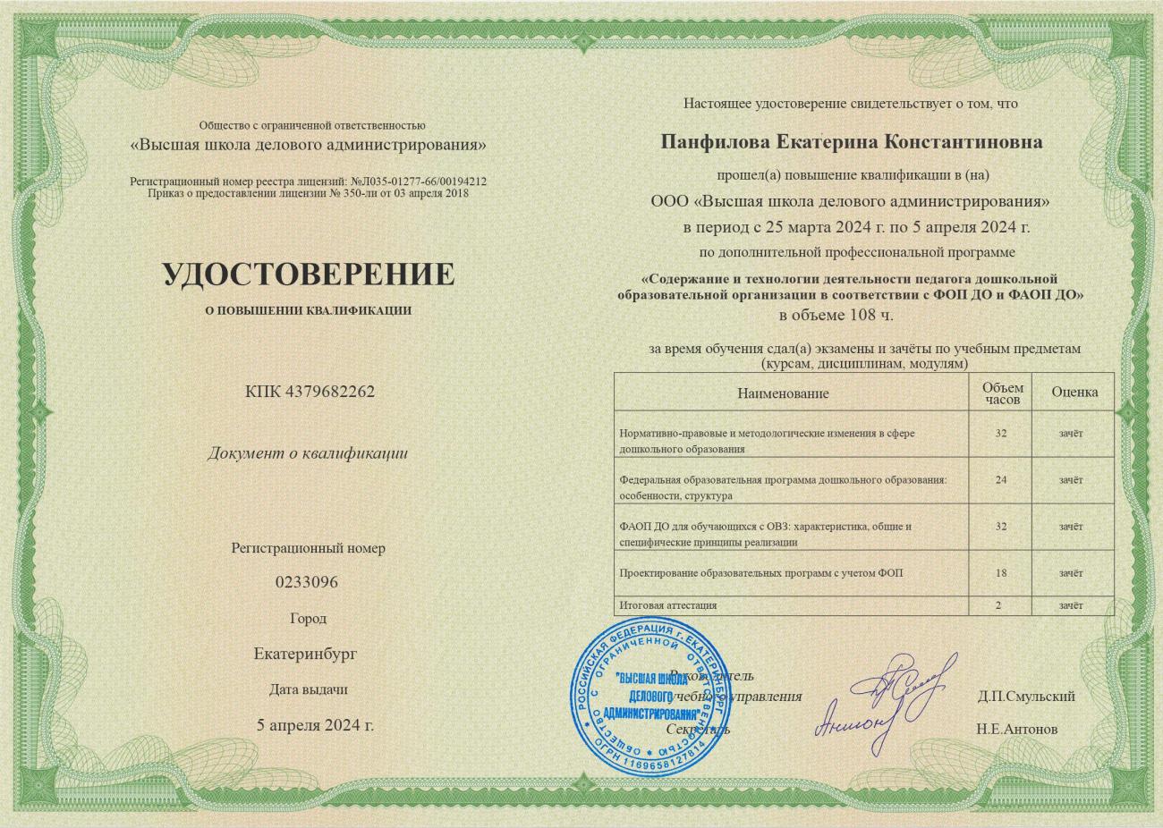2024г (108ч) "Содержание и технологии деятельности педагога дошкольной образовательной организации в соответствии с ФОП ДО и ФАОП ДО" |