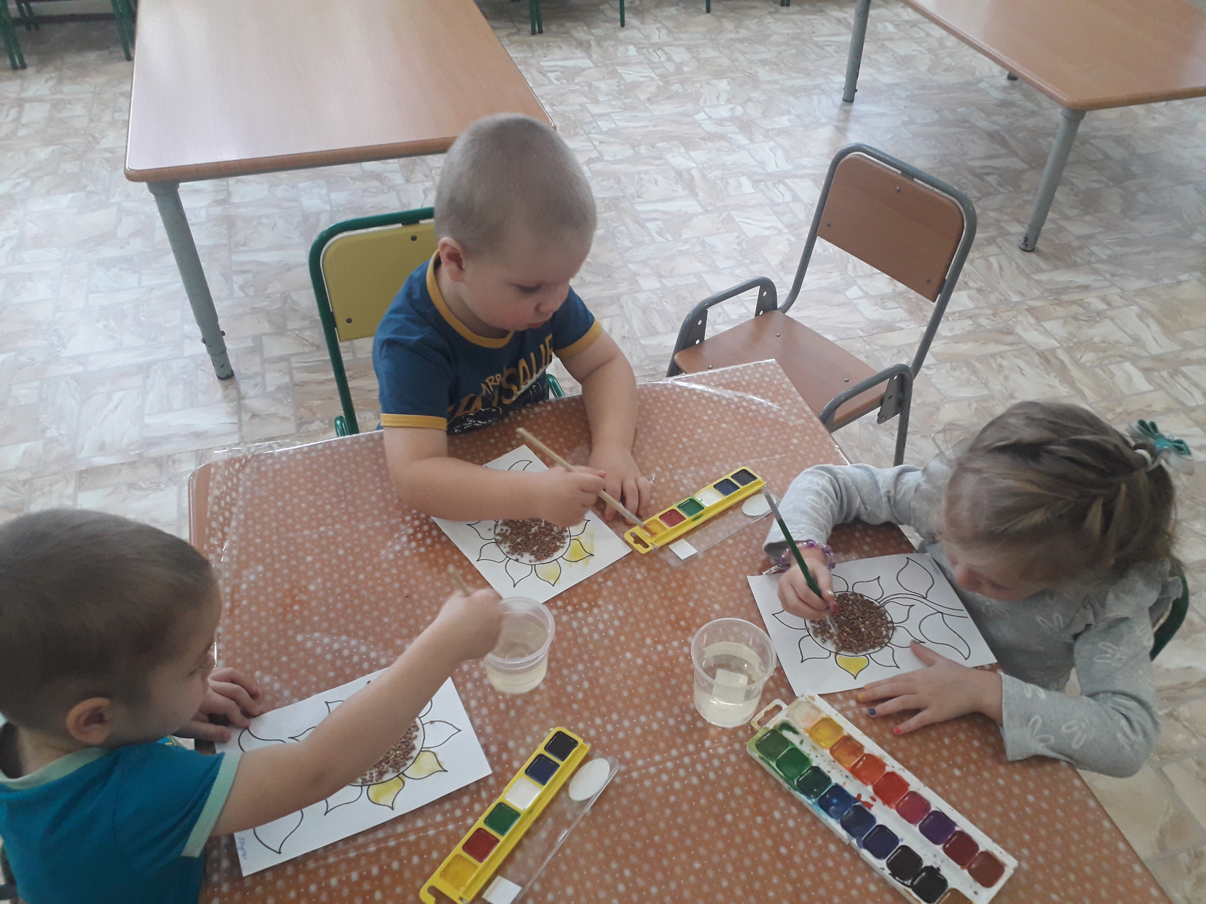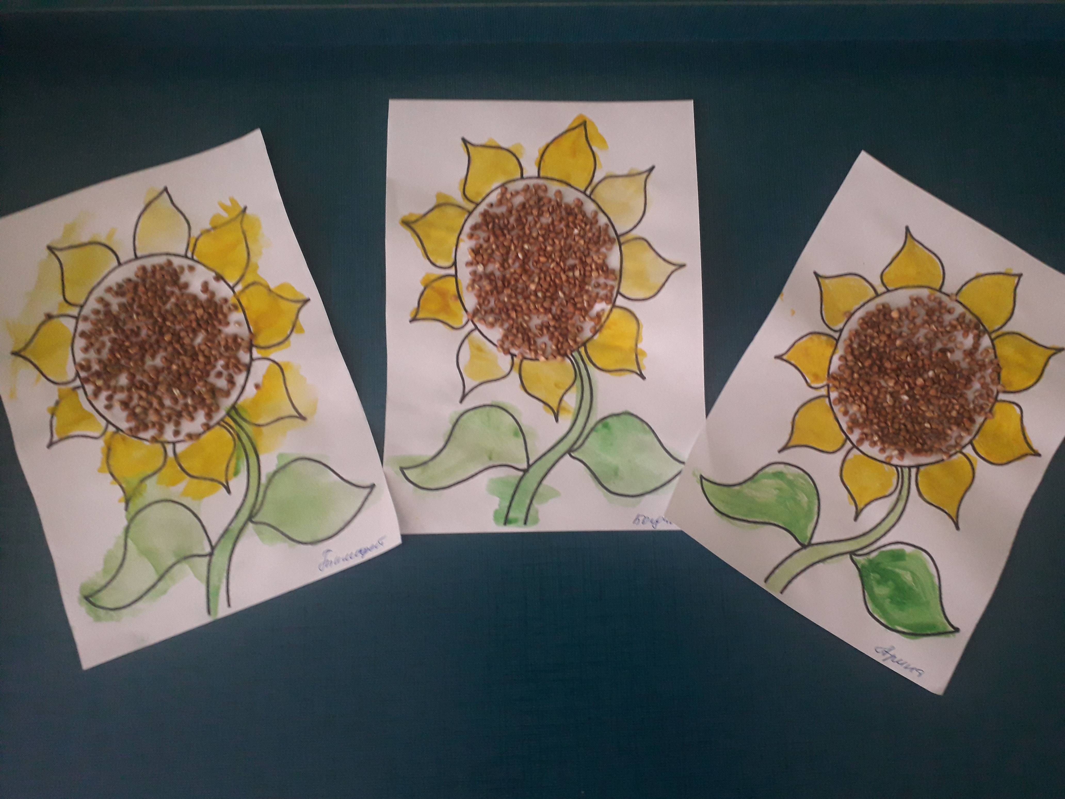 Рисование с элементами аппликации из природного материала "Подсолнушки" |