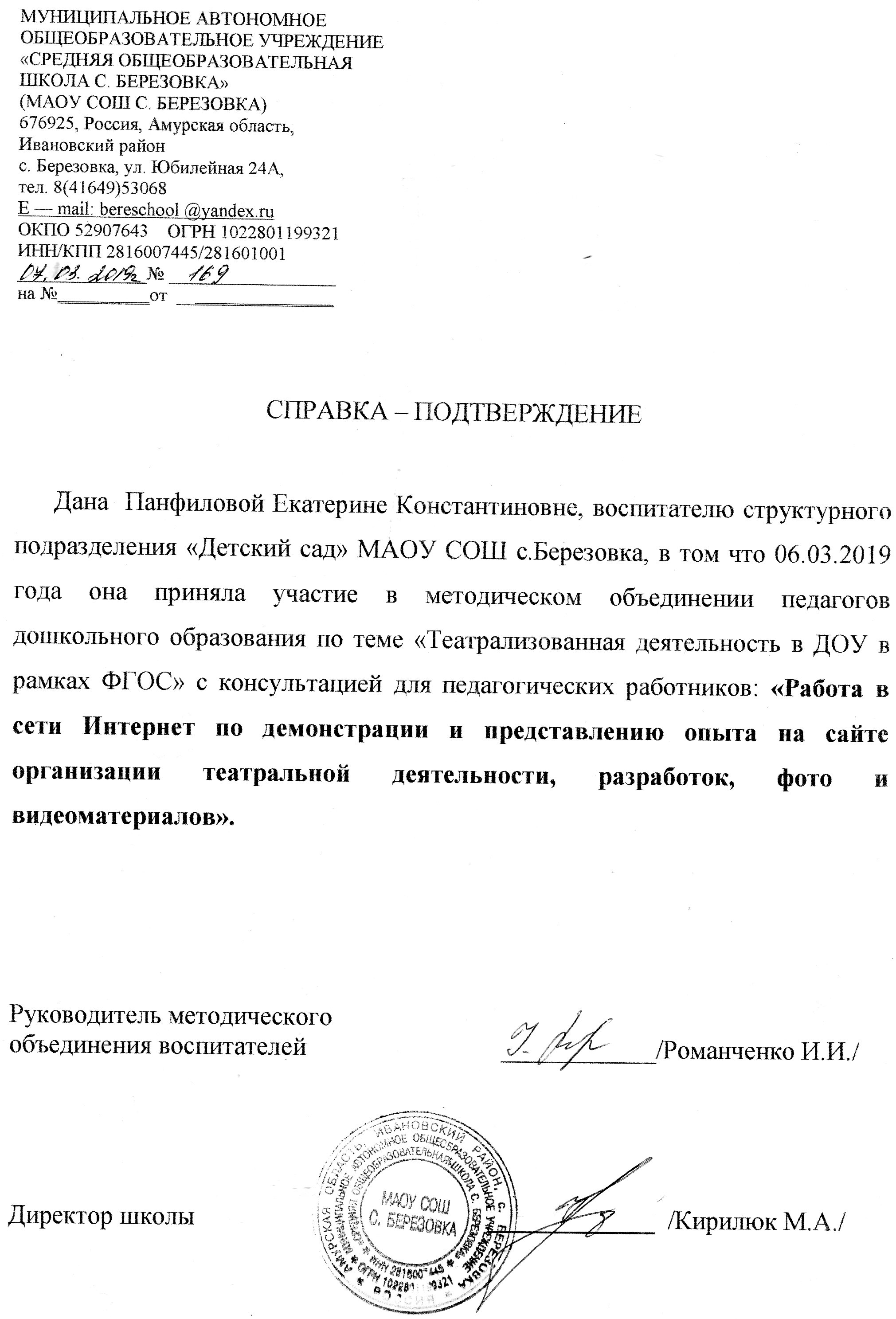 Ноябрь, 2019г Выступление на районном МО с докладом "Сюжетно-ролевая игра с элементами театрализованной деятельности" |