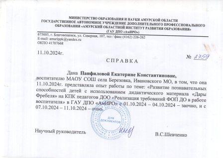 11.10.2024г Представление опыта работы на КПК педагогов ДОО г. Благовещенск |